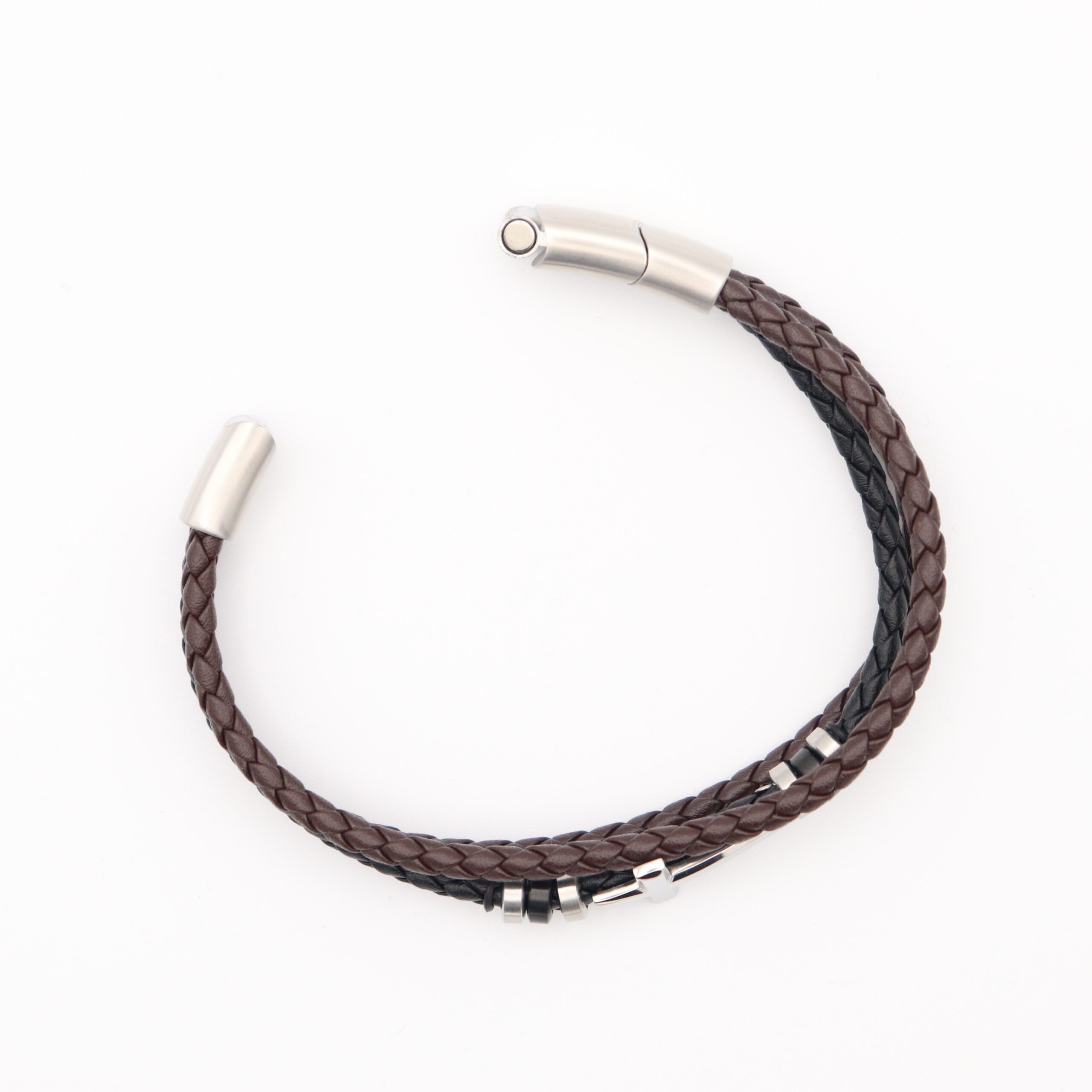✔ 3-reihiges Armband aus Edelstahl & geflochtenem Leder